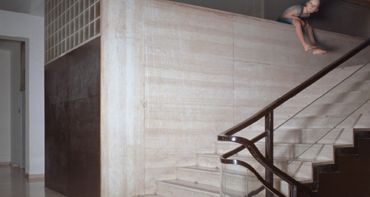 In Diego Marcon’s film MONELLE (2017), a number of young girls lie asleep between the architectural elements of the Casa del Fascio in Como — one of the most important modernist architecture designed by Giuseppe Terragni. Flashlights shine in the space, making the images appear for an instant — just the time necessary for the exposed frames to register with the viewer’s gaze before being plunged back into darkness. Around the sleeping bodies, some presences developed in CGI animation occupy the architecture and move around the space in obscure activities: nothing of their actions is visible to us, except in the fragments in which the image shows itself under the flashlight.