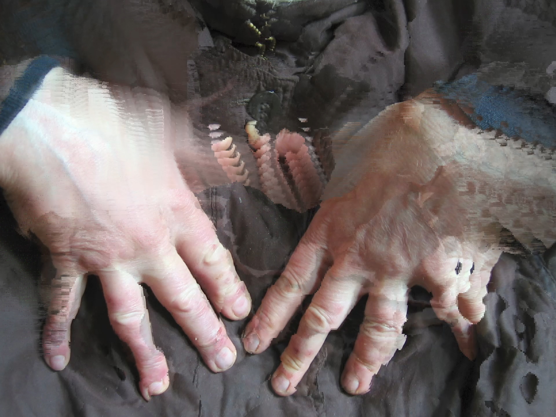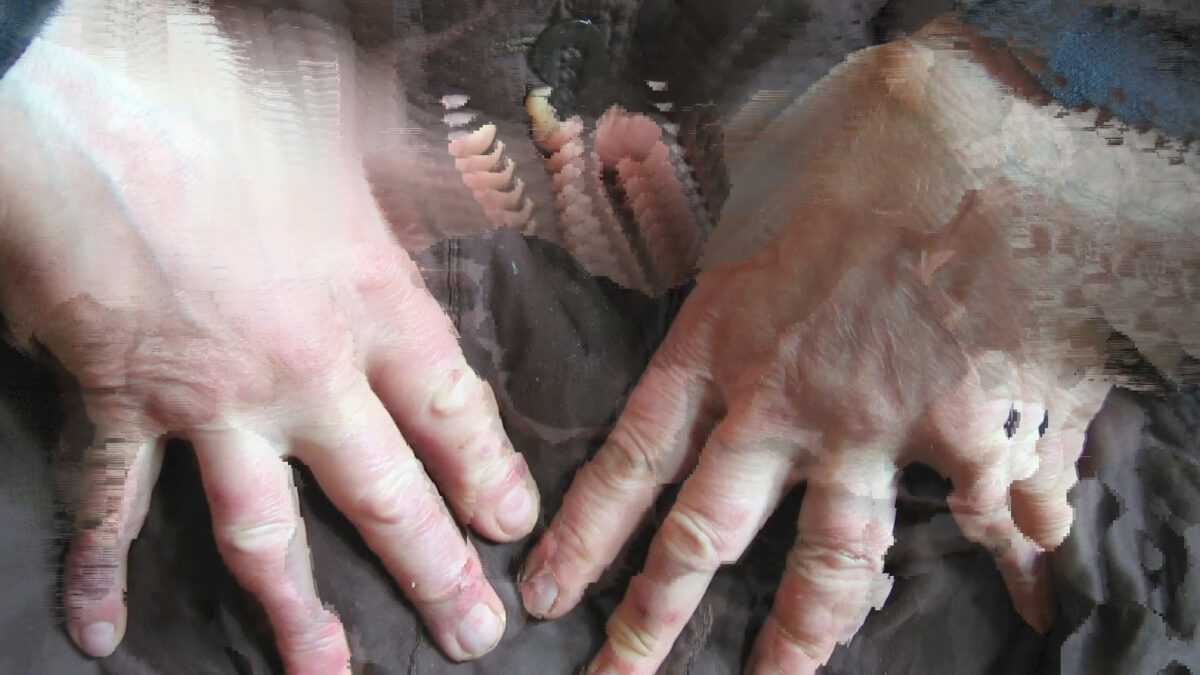 Over its stanzas, it focuses with granular attention on the different materials it collects, as if involved in the anamnesis of a self, a body, a house, or a city. The film entangles the macro with the micro-scale across nonlinear discourses, from the millennial evolution of bees’ social structure—footage originally filmed by artist and often collaborator Leslie Thornton—to the brief analysis of a body through an MRI scan. One of its guiding forces is a series of images from the archive of Horst Ademeit, whose obsessive, multi-decade imperative was to register the detrimental impact of radiations (or invisible, “cold” rays, as he called them) on his body and his surroundings. In another stanza, various erotic, narcotic, and nostalgic remains from Richards’s apartment and studio are gathered, scanned, and animated into mental conglomerates. Throughout the film, objects and subjects, bodies and images only solidify for a moment before smearing their borders, drifting into something else. Voices and percussions developed with musicians and actors rhythmically emerge and submerge, causing novel interferences.