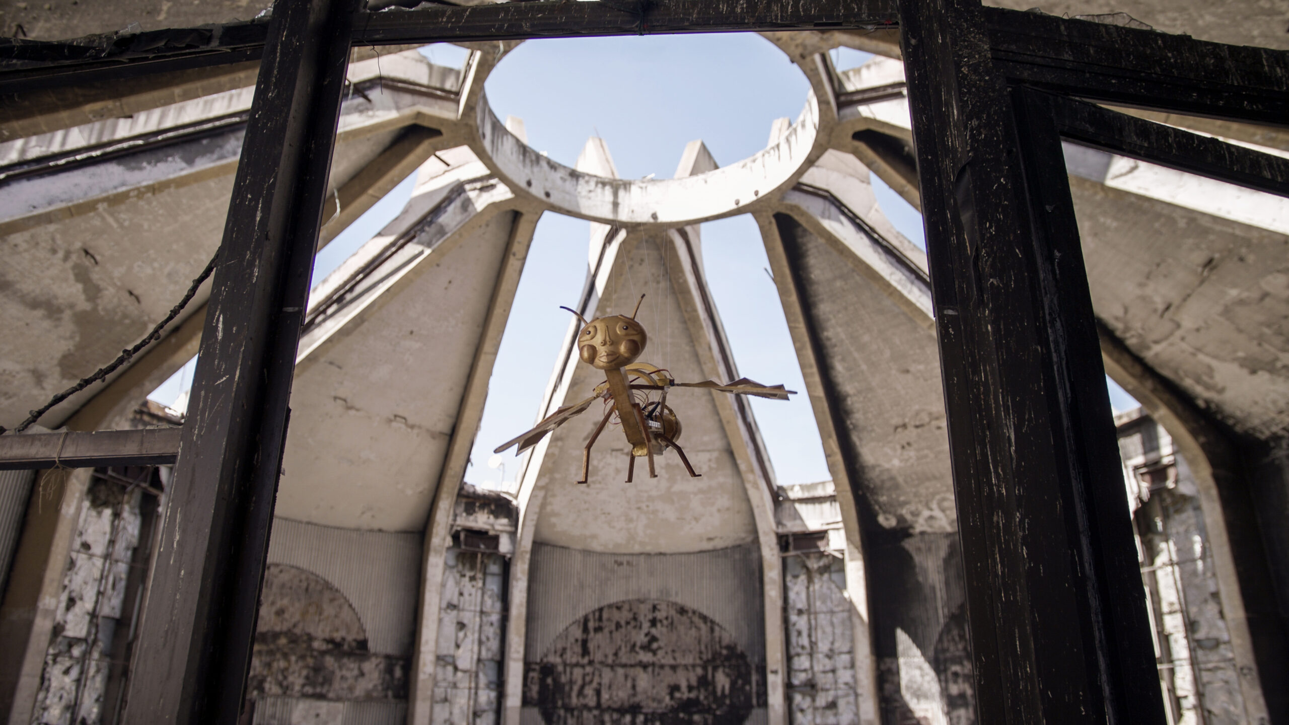 Part of “The Animals,” a trilogy that the artist has developed since 2019, the video continues its reflection on the absurdity of oppressive regimes of power and the fragility of utopian architectures while nurturing, through collaboration and storytelling, collective ways of remembering the past and imagining the future.